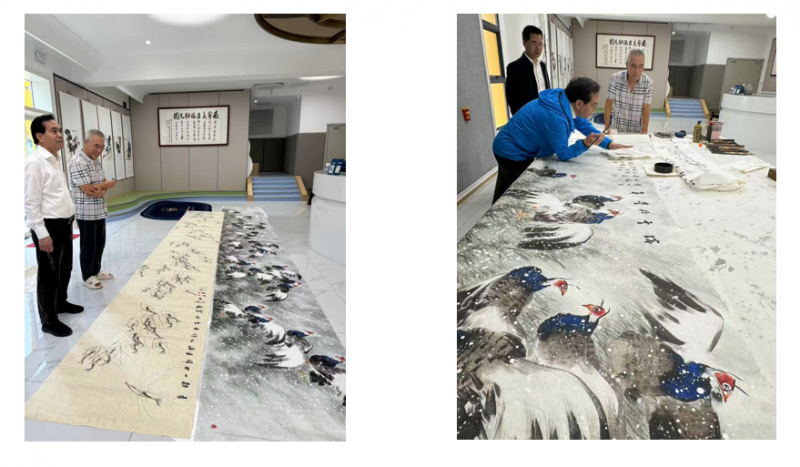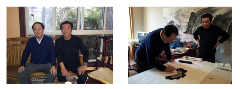 ▲韩羽先生向中国美术家协会主席靳尚谊学习传统技艺