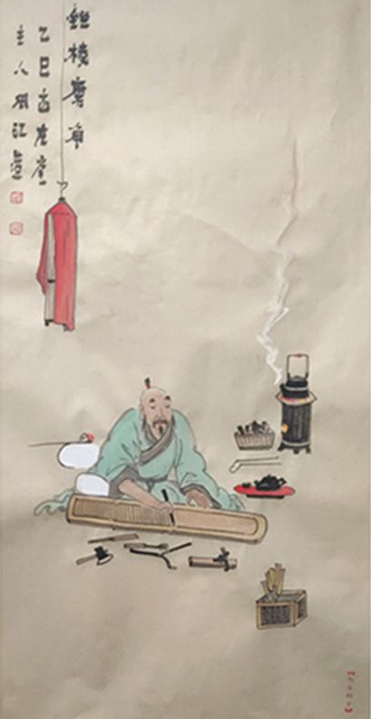 余立旁屏息,默记每一步骤不敢疏失。归至书斋,铺纸研墨,先绘琴之全貌,弦路、徽位一一摹写;复绘凿琴之景,大师执凿之姿、木屑飞扬之态,皆细致勾勒。